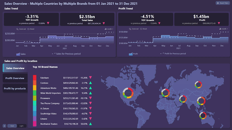 These examples were created with ZoomCharts Drill Down Visuals, which will empower you to create more intuitive, insightful and interactive reports. What’s more, we offer a Power BI Report Development service – with it, your business can receive professionally designed Power BI reports based on your requirements, licenses for our visuals, plus training and support.