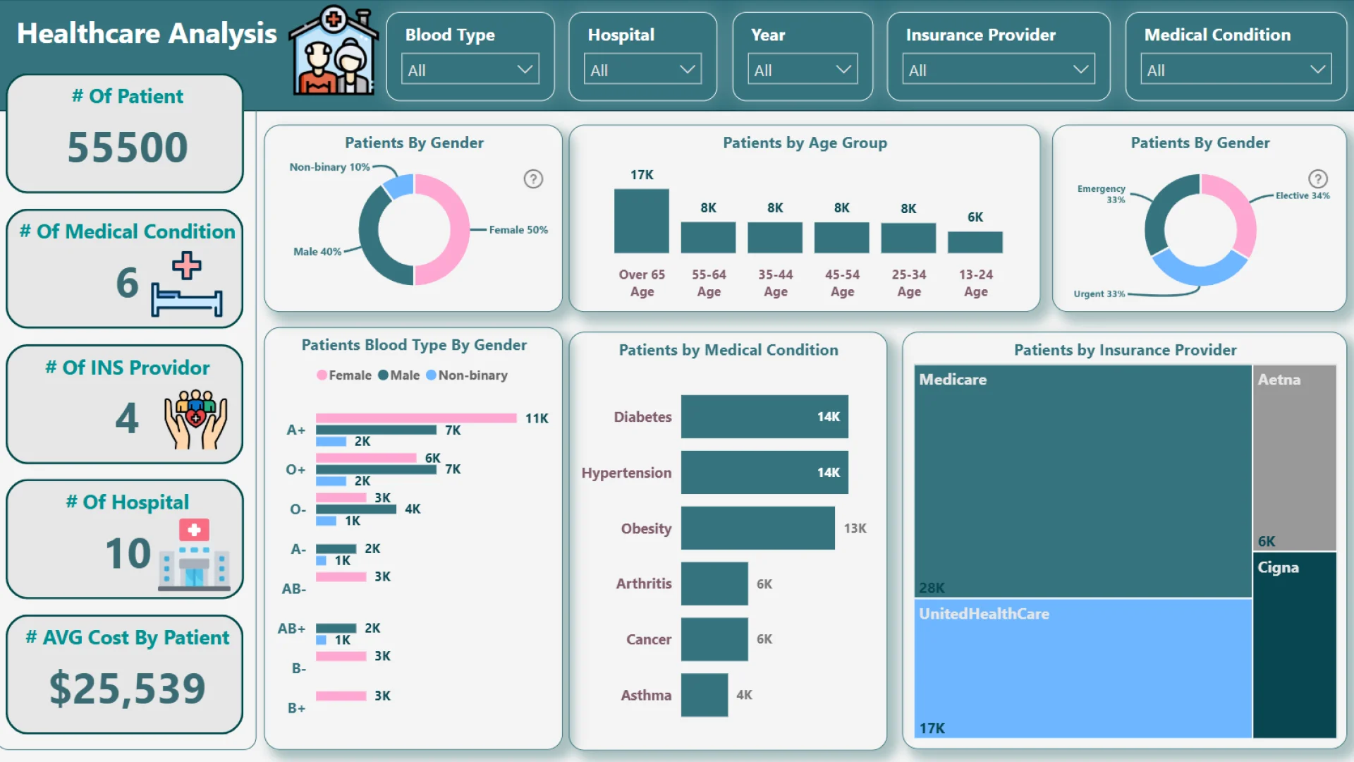 Report submitted for Onyx Data DataDNA ZoomCharts Mini Challenge, April 2025. The report is based on the Healthcare Dataset and includes ZoomCharts custom Drill Down PRO visuals for Power BI.