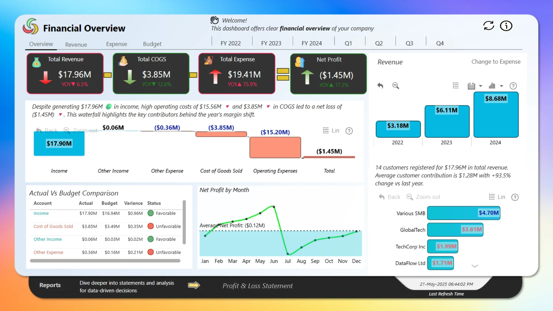 Report submitted for the FP20 Analytics ZoomCharts Challenge, May 2025. The report was built using the Financial Statements dataset Analysis Dataset and includes ZoomCharts custom Drill Down PRO visuals for Power BI.